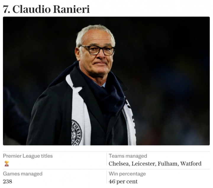 7.拉涅利(切尔西、莱斯特城、富勒姆、沃特福德)