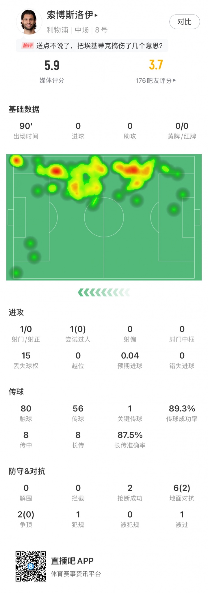 欧冠联赛阶段第2轮,利物浦0-1加拉塔萨雷。 本场比赛索博斯洛伊再度客串右后卫,送对手点球。 本场比赛索博斯洛伊1次射门无射正,1次过人未成功,56次传球1次关键传球,传球成功率89.3%,6次地面对抗2次成功,2次争顶无成功。