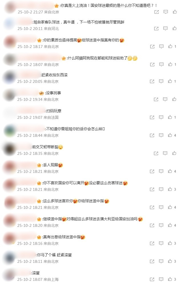 相关新闻——又与球迷冲突!国安球迷赛后集体大骂杨立瑜,球员比手势鼓掌回应