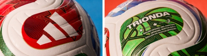 “三重浪”旨在致敬加拿大、墨西哥和美国三大东道国。这款足球采用全新四拼片结构,旨在助力更快更顺畅的运动表现。流畅的几何线条则呼应 “三重浪” 这一名称中所代表的海浪意象。