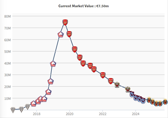 2019年夏窗,阿森纳花费当时创队史纪录的8000万欧,从里尔签下佩佩,球员代表枪手出战112场比赛,贡献27球21助,2023年自由身加盟特拉布宗体育。
