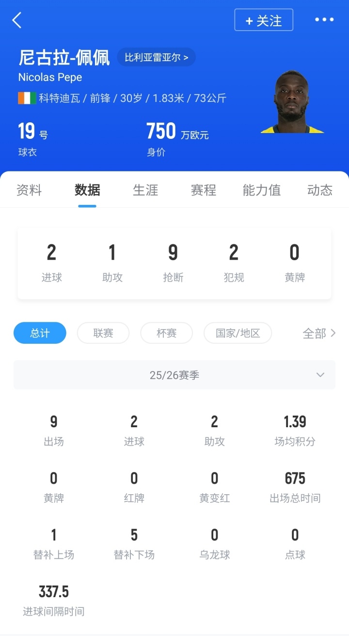 上赛季佩佩以自由身加盟比利亚雷亚尔,帮助球队拿到欧冠资格,本赛季至今佩佩坐稳主力位置,出战9场比赛,贡献2球2助。